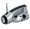Dynamo led flashlight 1.Dynamoflashlight with FM radio 2.FM radio with speaker 3.3*LED torch(Flashlight) 4.Power supply:shake the crank on the torch to generate power or use DC 5.With mobile charge jack and Can be used to charge mobile phone, MP3, digital camera etc, in case of emergency. 6.Revolving the crank for 1 minute can supply torch light for 30 minutes,Revolving the crank for 3 minutes can provide 5 to 8 minutes mobile power. 7.Material:ABS/thermoplastic 8.Dimension: 86.5*88*180mm 9.Weight: 272g 10.Color: customized CE,EMC and FCC certificate
